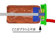 例によってブラシのトラブルだろうと見当をつけて中を調べたら、意外にもブラシには異常はみられません。
